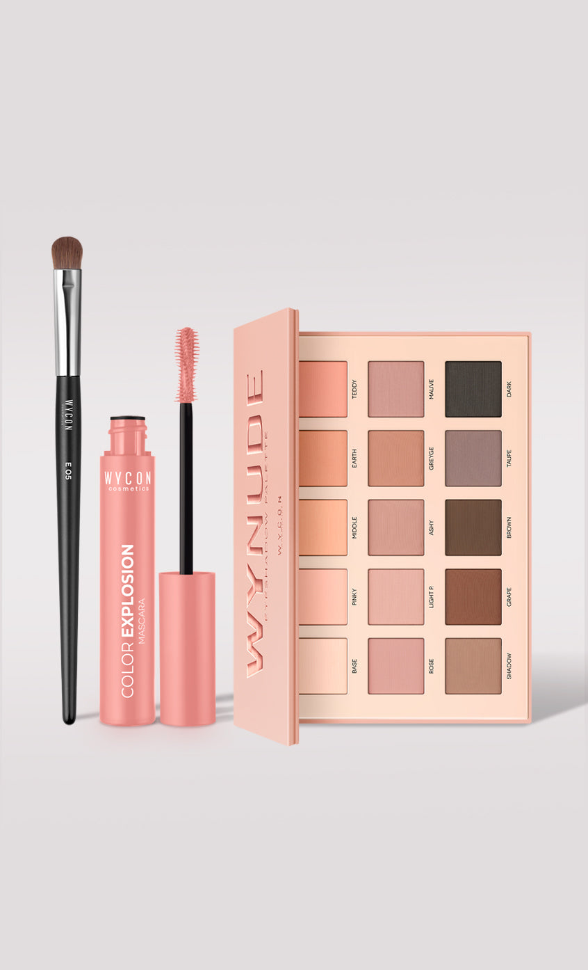 Palette WYNUDE con nuance nude raffinate e mascara COLOR EXPLOSION per uno sguardo intenso, colorato e irresistibile.